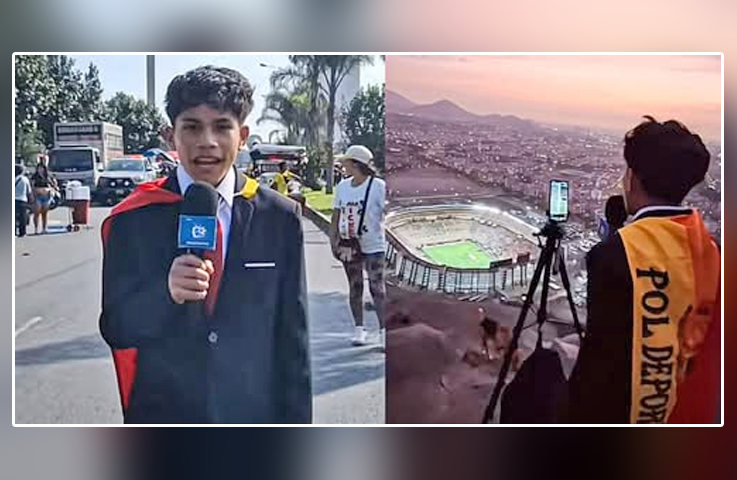 Sus herramientas, un teléfono móvil, micrófono, trípode, un aro de luz y el apoyo de su hermano. De esta forma el jovencito de 15 años narró desde la cima del cerro colindante al estadio Monumental.