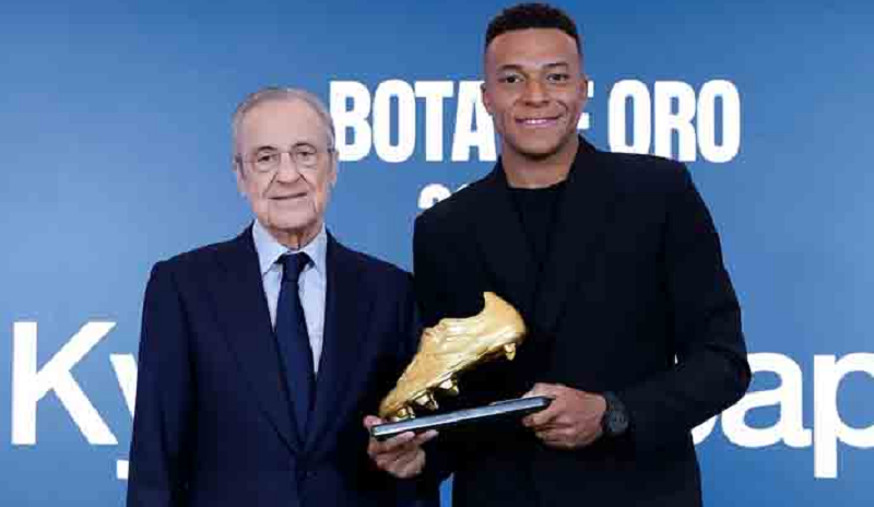Vestido de gala y arropado por el club blanco, el delantero francés Kylian Mbappé recibió este viernes la Bota de Oro, premio que reconoce al máximo goleador de las ligas europeas.