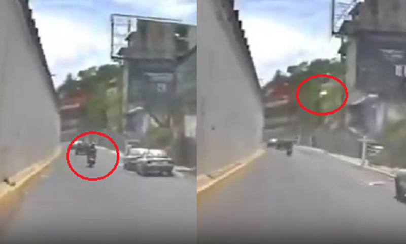 VIDEO | Tanque de agua cae desde edificio y deja a motociclista y acompañante lesionados