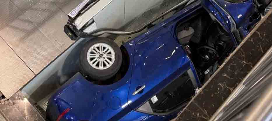 VIDEO | Mujer de 68 años pierde el control de su vehículo y termina sobre gradas eléctricas