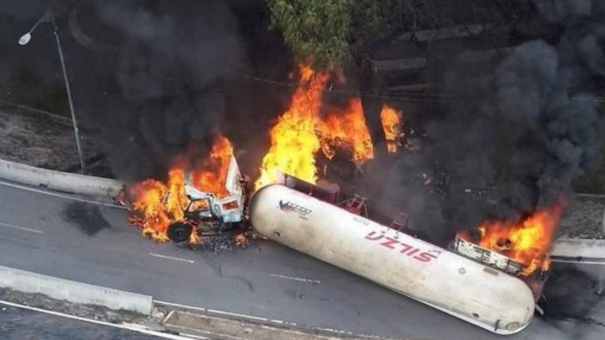 La pipa terminó impactándose contra el muro de contención, provocando la ruptura del tanque que transportaba gas LP, lo que derivó en una fuerte explosión seguida de un incendio de gran magnitud.