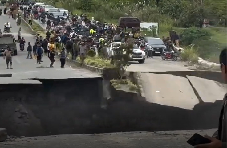 El impactante colapso de una carretera en el distrito indonesio de Bener Meriah quedó registrado en un video sembrando el pánico entre los residentes.