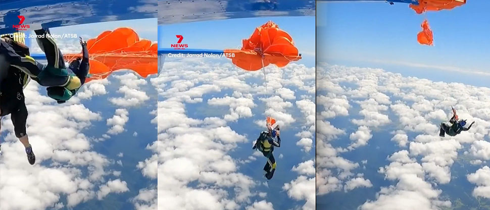 #Australia l Paracaidista queda en el ala de un avión tras activarse su paracaídas de emergencia