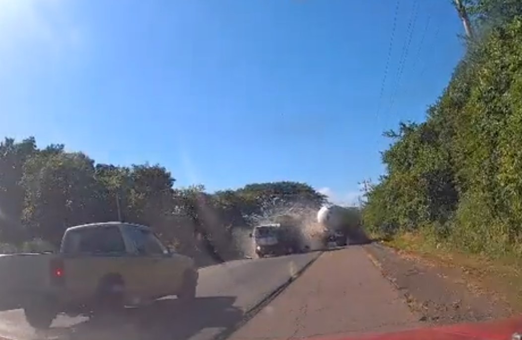Impactantes imágenes quedaron registradas por la cámara de seguridad instalada en un vehículo particular, del aparatoso accidente de tránsito ocurrido sobre el kilómetro 99 de la carretera Litoral, cerca del distrito de Jiquilisco, Usulután Oeste.