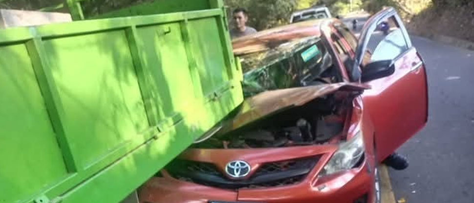 El percance involucró a un vehículo liviano placas 929-339, cuyo conductor, por causas desconocidas, chocó contra la parte trasera de un camión