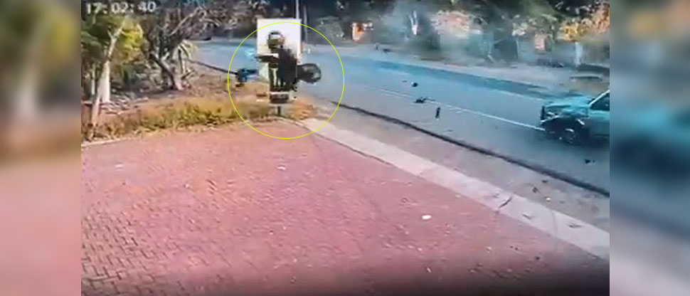 En este accidente, un motociclista salió “volando” luego de ser impactado por un vehículo tipo pick up.
