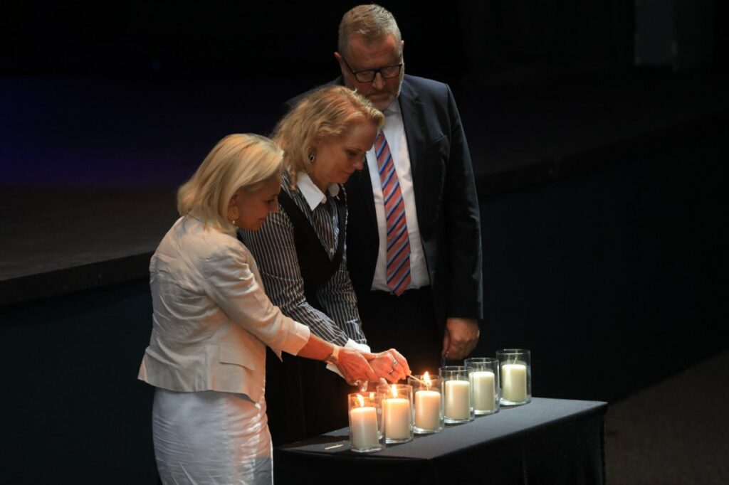 Como parte central del acto, se encendieron seis velas, cada una en representación de un millón de judíos asesinados.