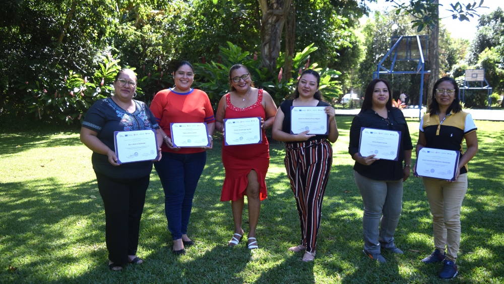 Más de 250 mujeres finalizaron el curso de Alfabetización en Derechos en el marco del proyecto «Empoderamiento Económico de las Mujeres en los municipios priorizados de El Salvador», el cual es financiado por la Agencia Española de Cooperación Internacional para el Desarrollo (Aecid) y la Unión Europea.