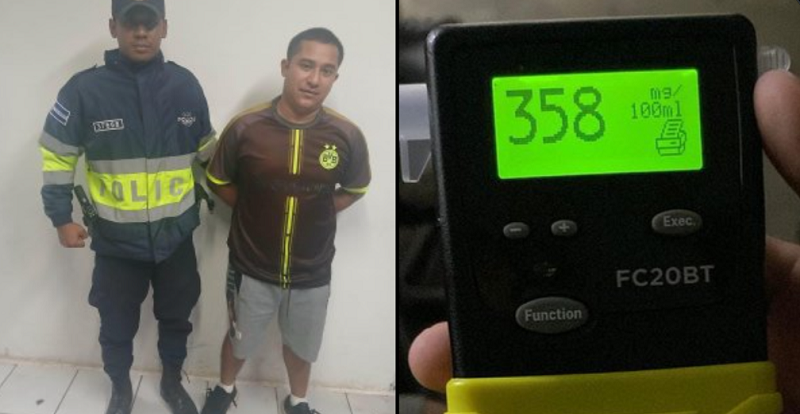 De acuerdo con el informe policial, el conductor manejaba en evidente estado de ebriedad y, al ser sometido a la prueba de alcotest, registró 358 grados de alcohol en sangre.