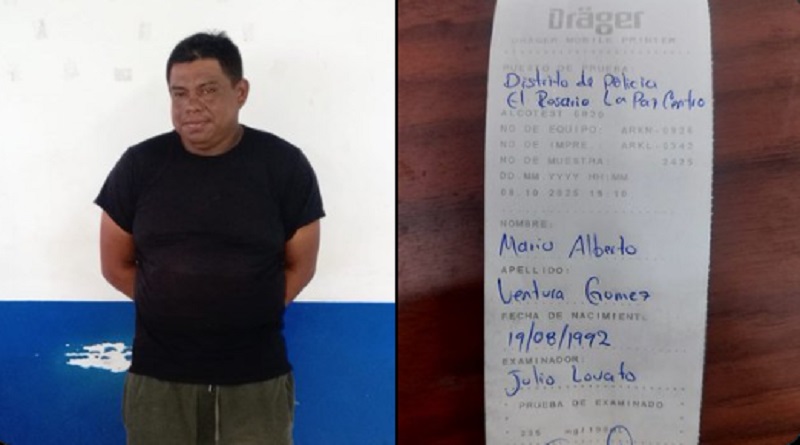 La Policía Nacional Civil (PNC) reportó la detención de un motociclista que conducía en estado de ebriedad en el distrito de El Rosario, La Paz Centro.