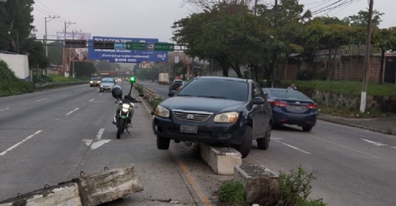 Esta madrugada, un automóvil tipo sedán fue abandonado tras impactar contra los separadores de carril en un tramo de la carretera Panamericana, en el distrito de Santa Tecla, municipio de La Libertad Sur.