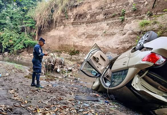 La Policía Nacional Civil informó que el conductor de un vehículo tipo sedán perdió el control del volante y terminó cayendo cerca de un río, a la altura del kilómetro 39 de la carretera Panamericana, en el sentido que conduce de Santa Ana hacia San Salvador.