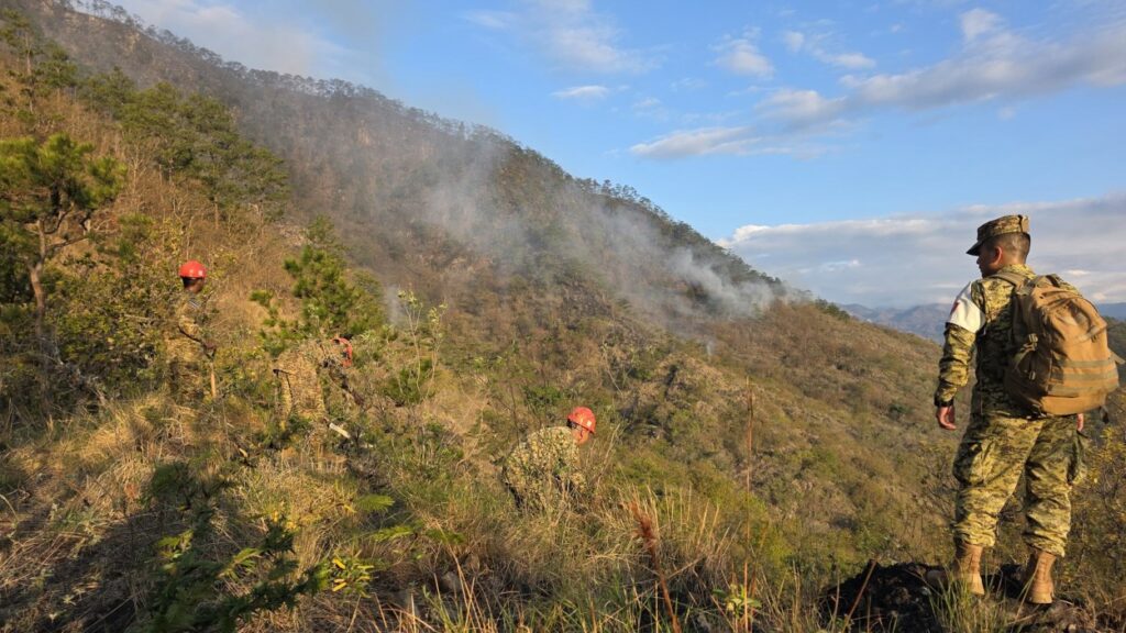 Militares apoyan labores para sofocar incendio en cerro Chuntrún en Chalatenango