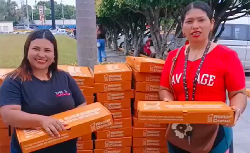 “A todas las personas que dicen que las donas son de septiembre, decirles que son de hoy. Los que dicen que son las que quedaron, las arruinadas, las rancias, que no sirven, pues no, las donas son recién sacadas”, indicó una de las jóvenes a través de un video difundido en redes sociales.