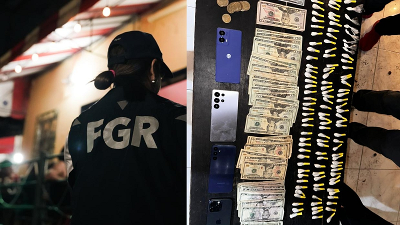 Los operativos fueron dirigidos por la FGR con el apoyo de unidades de la Policía Nacional Civil (PNC), quienes realizaron registros en los locales en busca de evidencias. Durante las intervenciones, las autoridades incautaron porciones de cocaína listas para su comercialización, además de dinero en efectivo y teléfonos celulares.
