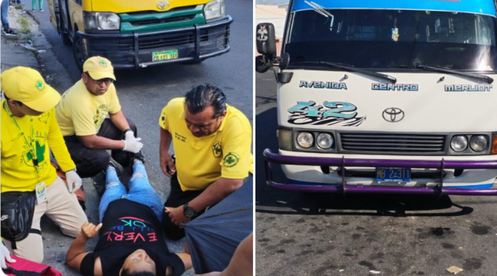 Socorristas auxilian a mujer tras caerse de microbús de la ruta 42