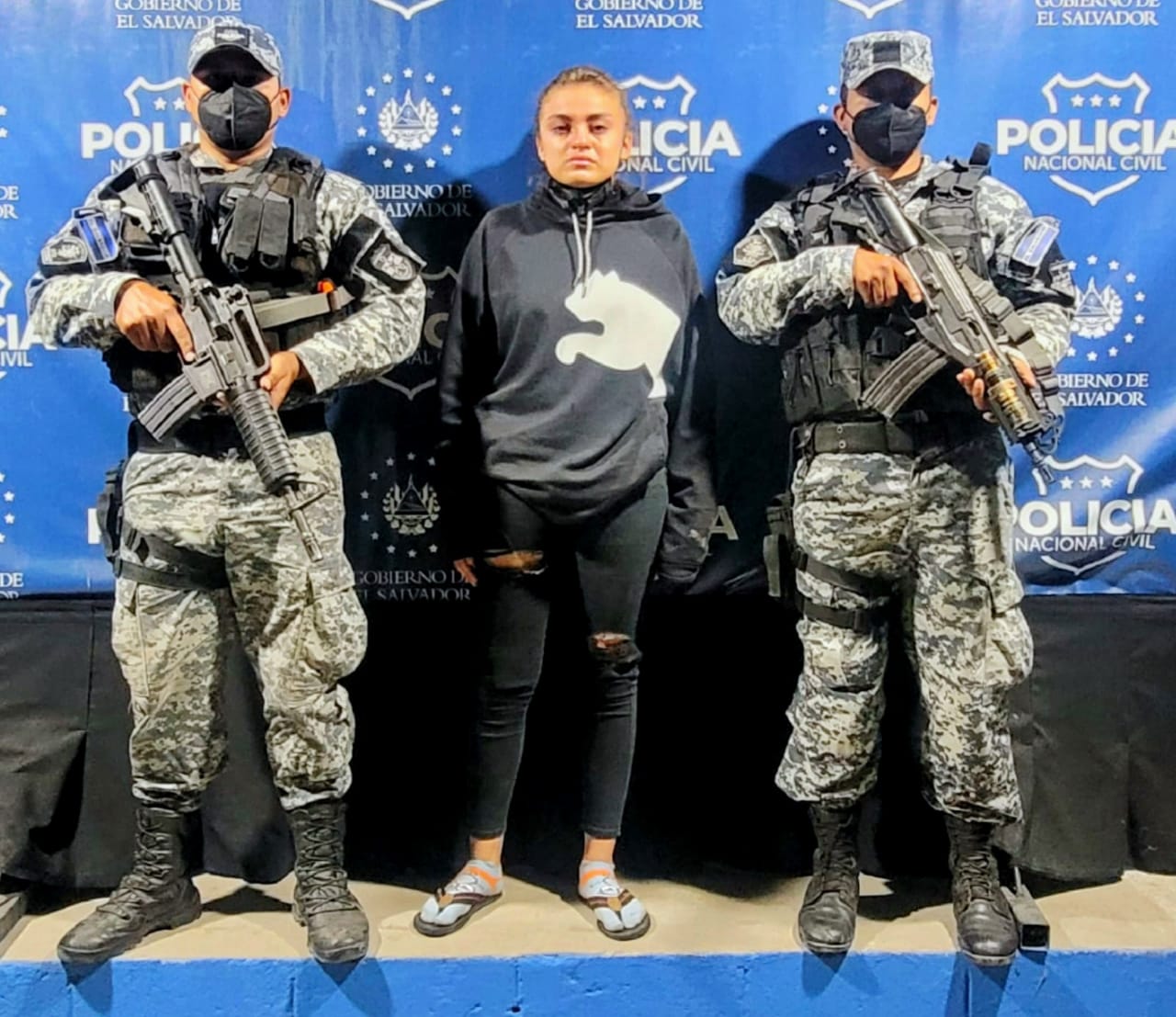 Una bella y joven colaborada del Barrio 18 fue arrestado por agentes de la Policía Nacional Civil (PNC), en la capital, la noche del miércoles.
