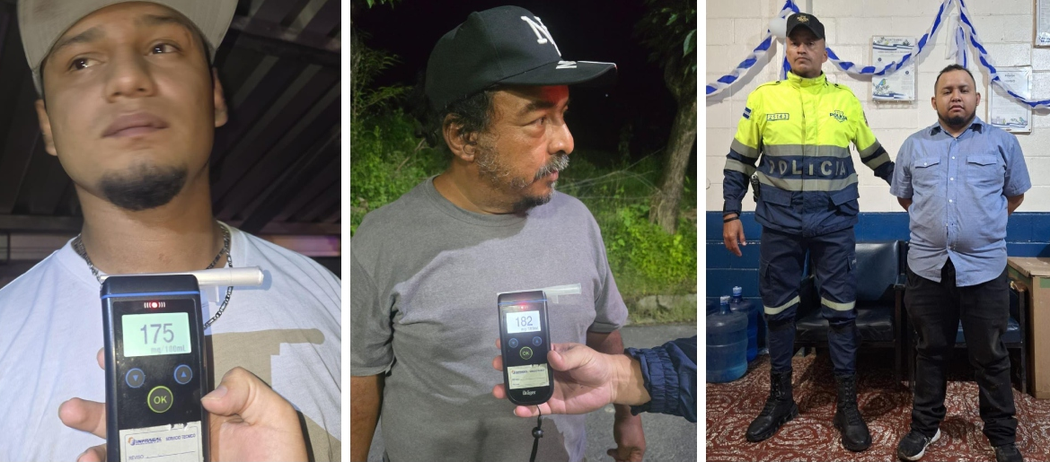 La Policía Nacional Civil (PNC) reportó la captura de tres sujetos que conducían en estado de ebriedad y provocaron accidentes de tránsito en diferentes puntos de Chalatenango y Santa Ana.