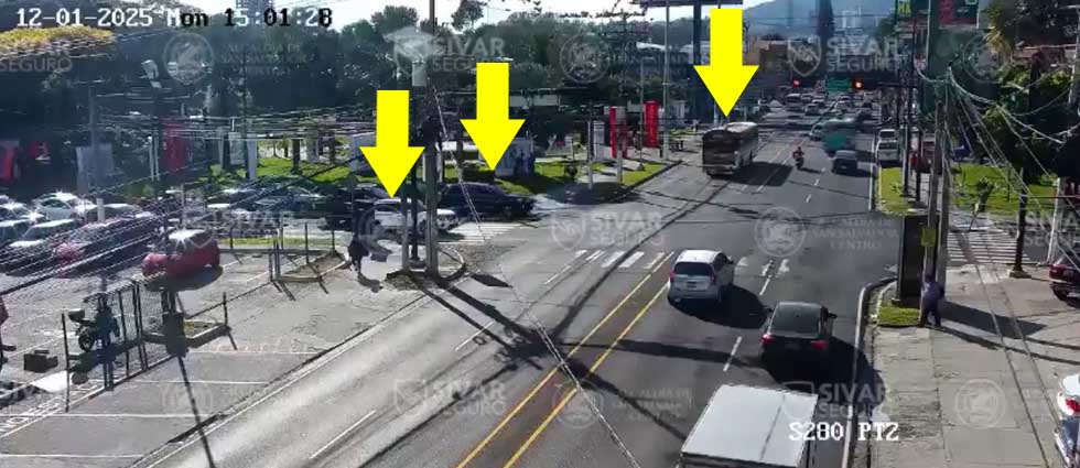 Las cámaras del sistema de videovigilancia Sívar Seguro de la alcaldía de San Salvador Centro captaron el siniestro vial provocado por un autobús del transporte colectivo sobre el Paseo General Escalón, la tarde del lunes.