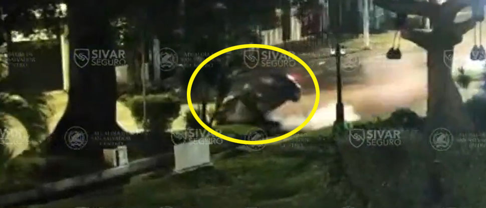 En la imagen se puede ver el vehículo que circula a excesiva velocidad y no se detiene para hacer el giro en la rotonda.