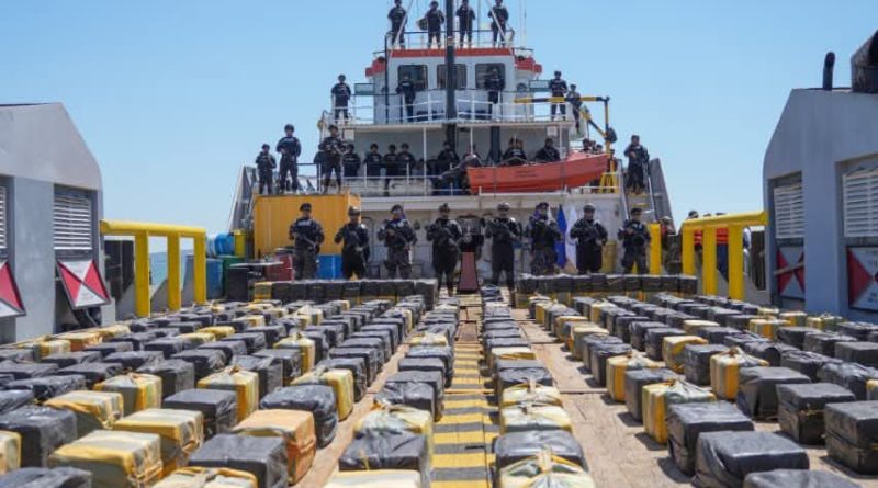 De acuerdo con la información oficial, fueron decomisadas 6.6 toneladas de cocaína, con un valor estimado de 165 millones de dólares, distribuidas en 330 bultos. La operación fue ejecutada a 380 millas náuticas al suroeste de las costas nacionales, como parte de acciones de vigilancia y control en aguas internacionales.