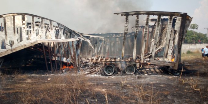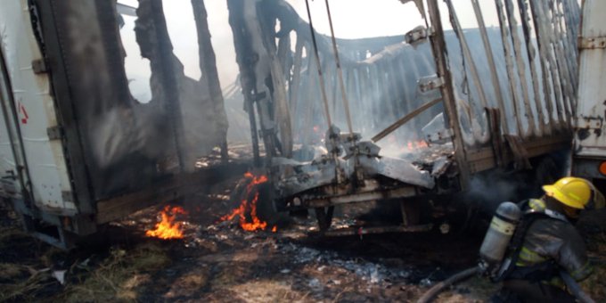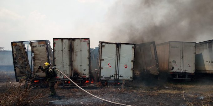 De acuerdo con los bomberos, ninguno de los furgones que fue afectado por las llamas tenía cabezal. El incendio fue liquidado alrededor de las 2:00 p.m.