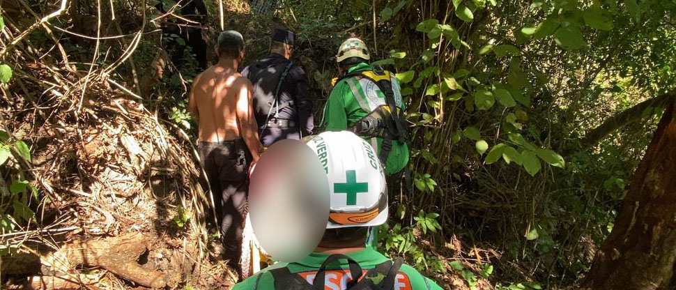 Agentes de la Policía Nacional Civil (PNC) y socorristas de Cruz Verde Salvadoreña rescataron a un niño y su madre que cayeron en un barranco en el distrito de San Martín.