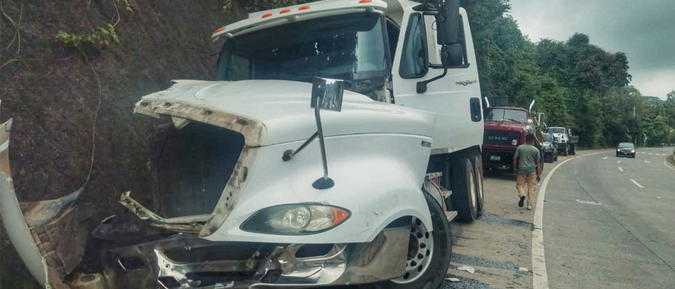 El panel circulaba sobre el kilómetro 22.5 de la carretera al Puerto de La Libertad cuando fue impactado por el camión de volteo.