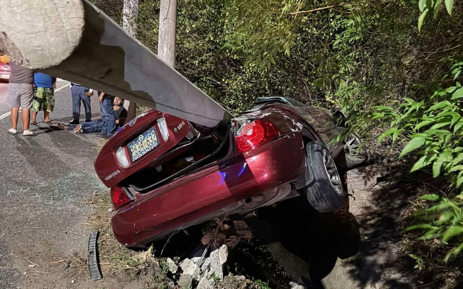 El vehículo quedó destrozado por completo al ser aplastado por un poste del tendido eléctrico, luego de salirse de la carretera e impactar en las orillas de la vía.