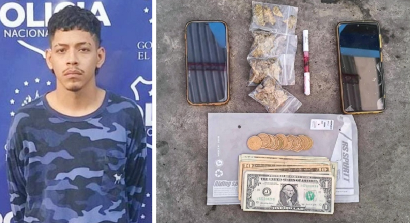 La tarde del lunes, un joven fue arrestado luego de que agentes de la Policía Nacional Civil (PNC) le hallaron en su poder decenas de porciones de droga.