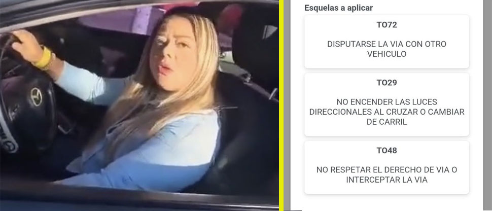 Luego de detenerse, el microbusero es obligado a retroceder. Notablemente molesto, el microbusero se incorpora a su carril.