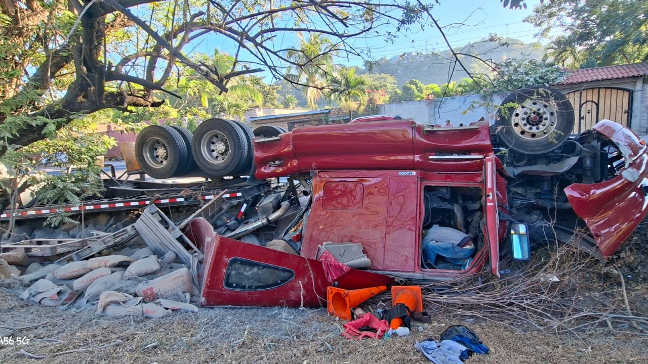Tras el percance el conductor de la unidad pesada resultó con golpes leves y fue atendido por personal del Sistema de Emergencias Médicas