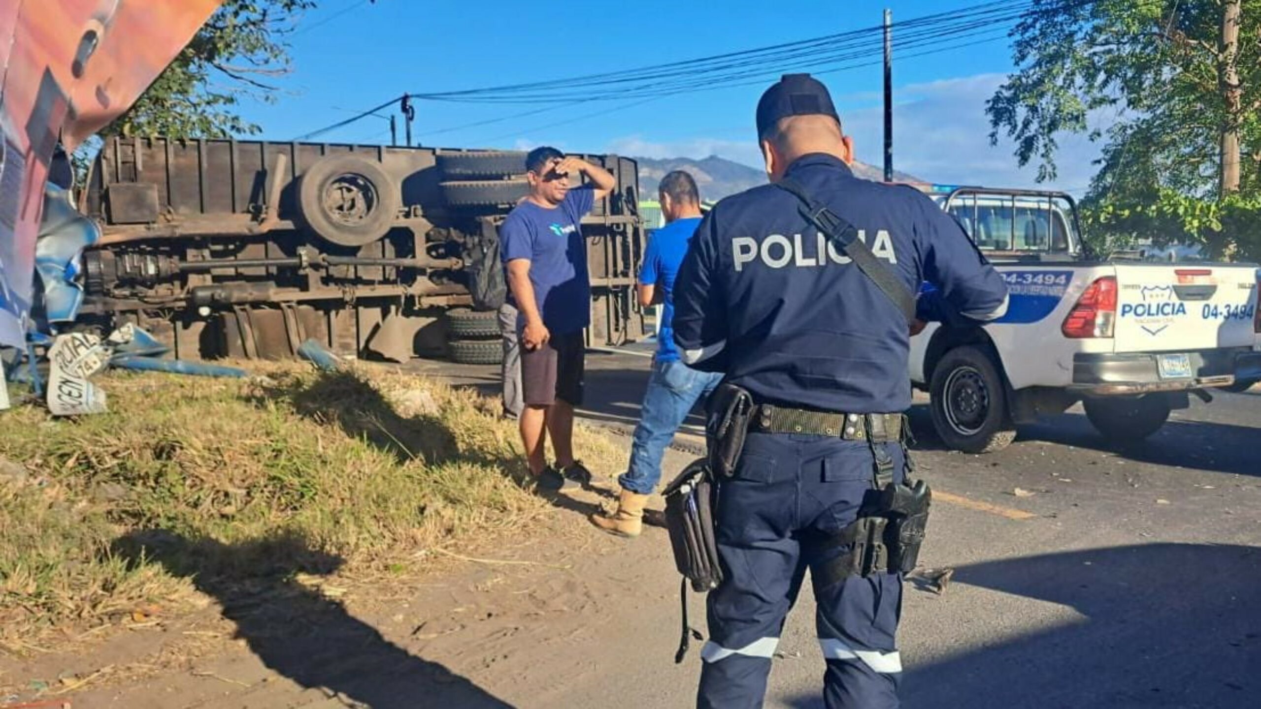 Según el reporte policial, un camión que transportaba cajas de manteca y harina perdió el control y volcó después de colisionar con otro vehículo, cuyo conductor se había incorporado a la carretera, de forma imprudente. El camión también chocó contra una valla publicitaria antes de detenerse en un árbol.