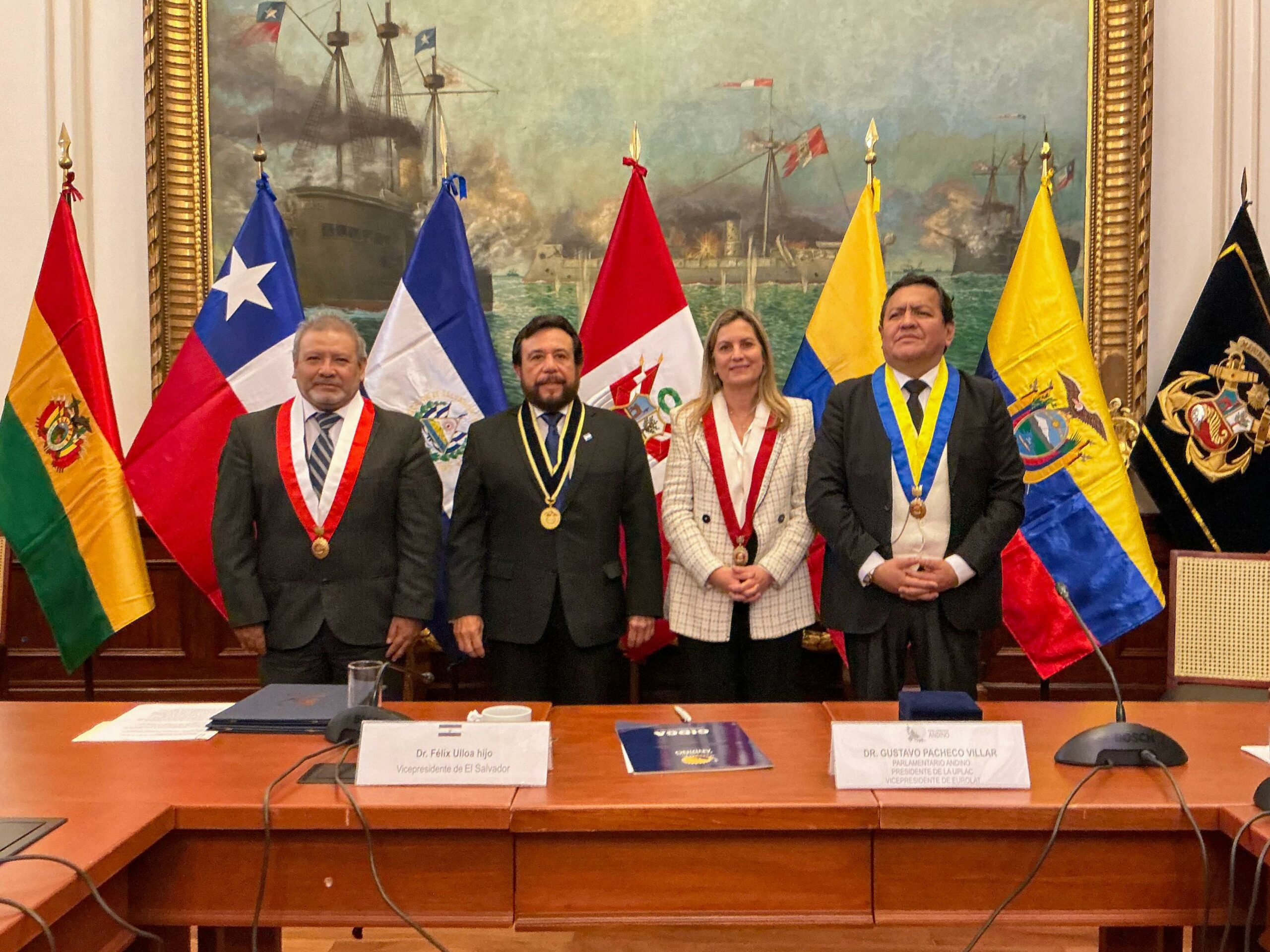 El Vicepresidente Félix Ulloa, expuso ante el Congreso de la República del Perú, los profundos cambios que ha experimentado El Salvador en materia de seguridad y recibió la condecoración “Gran Medalla de los Andes”, otorgada por el Presidente del Parlamento Andino, Gustavo Pacheco.