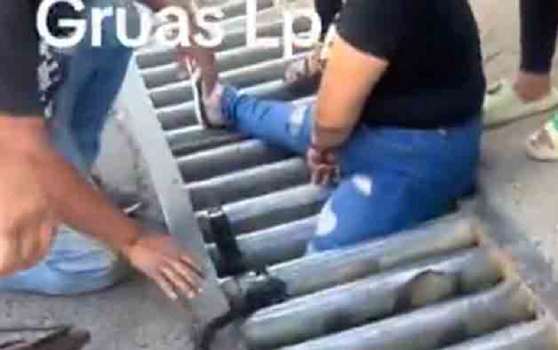 En redes sociales se viralizó el caso de una mujer que fue rescatada tras quedar atrapada en una cuneta metálica en el distrito de Lourdes, departamento de La Libertad.