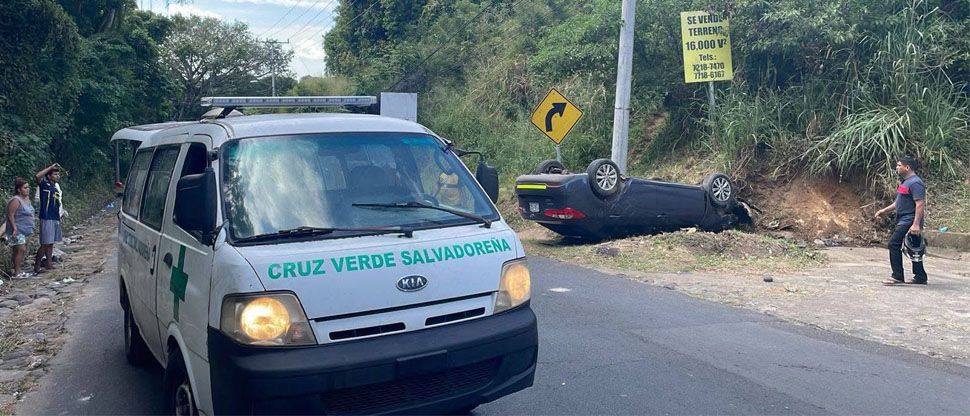 El automóvil particular circulaba sobre la carretera que de Zacatecoluca conduce a San Vicente, cerca del cementerio general “El Espino”, en la ciudad viroleña, cuando volcó.