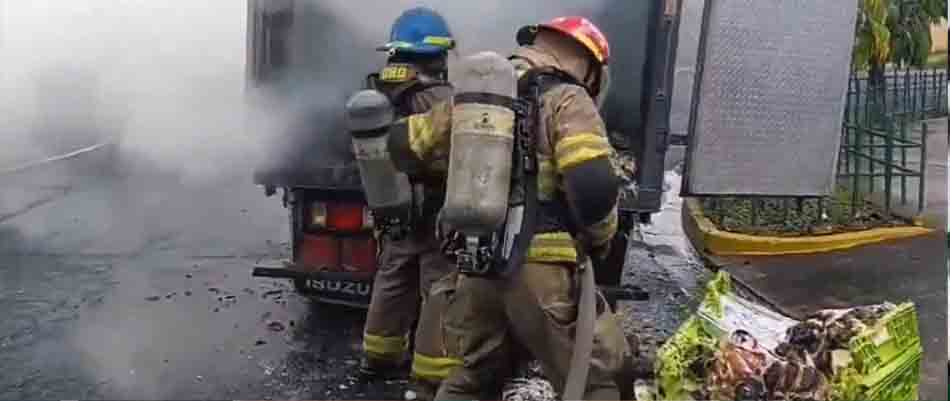Bomberos sofocan las llamas de un camión de comida en la colonia Escalón