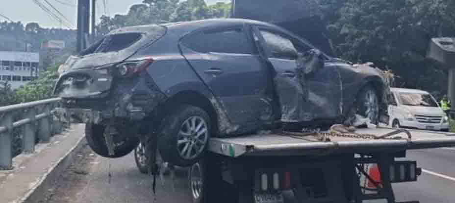 Este viernes 10 de octubre fue extraído un vehículo desde el puente Villalobos (Guatemala) tras ser arrastrado por las lluvias la semana pasada.