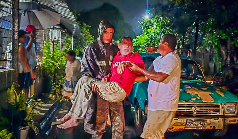 Equipos de la Fuerza Armada de El Salvador apoyaron en la evacuación de una persona de la tercera edad en la comunidad San Roque, en Acajutla, Sonsonate Oeste, luego de que el techo de su vivienda colapsara a causa de las lluvias.