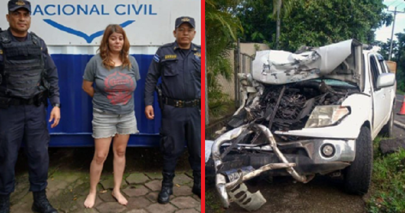 La Policía Nacional Civil informó sobre la detención de Brenda Sofía Alarcón Rodríguez, de 35 años, por conducción peligrosa tras protagonizar un accidente en el kilómetro 74 de la carretera de Candelaria de la Frontera, en Santa Ana.