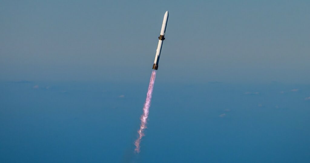 New Shepard es un cohete reutilizable que ha llevado a docenas de personas a la línea de Kármán, reconocida internacionalmente como el límite entre la atmósfera y el espacio exterior.