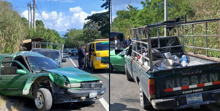 Cuatro personas resultaron lesionadas en un triple accidente de tránsito registrado sobre el kilómetro 38 de la carretera Panamericana, en el sentido que conduce de San Salvador hacia Santa Ana.