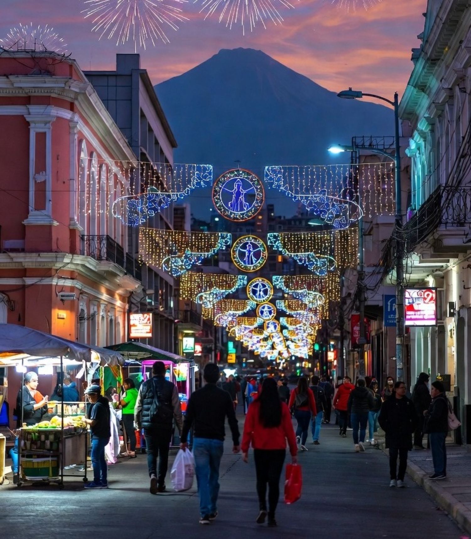 El Centro Histórico, aquel corazón que por años estuvo apagado, late otra vez con fuerza. Donde antes reinaba la sombra, hoy relucen miles de luces que se entrelazan entre los balcones coloniales y cafés restaurados. Las Plazas están llenas de vida. La Catedral se viste de reflejos dorados. Familias enteras pasean sin prisa: niños con helados, abuelos tomados de la mano, jóvenes llenos de vida… inundan las calles con una alegría que parecía haber estado esperando décadas para renacer.