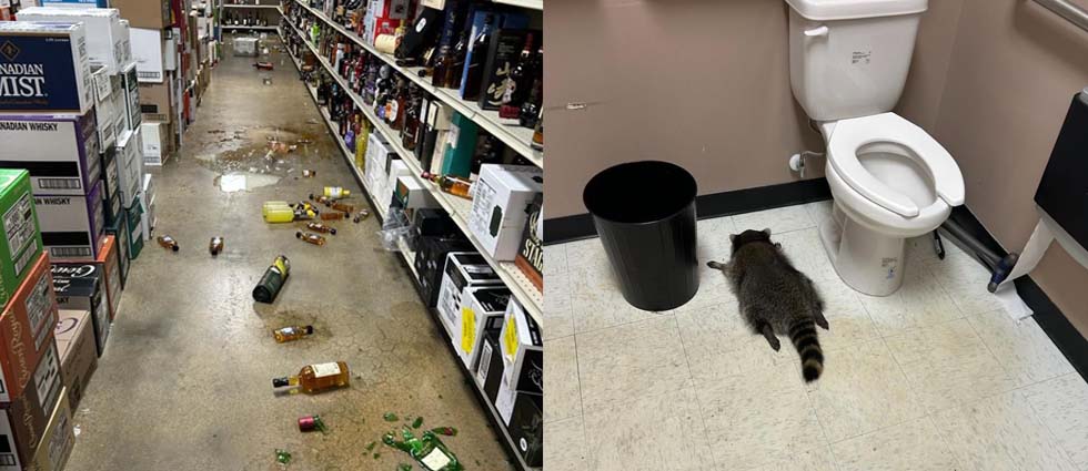 ¡Insólito! Mapache irrumpe en una licorería y lo hallan desmayado en el baño: «Se emborrachó»